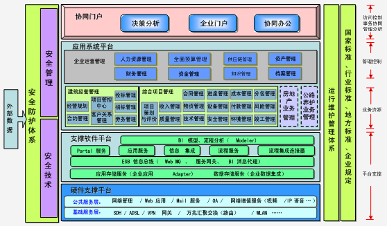 建筑應用客戶化、建筑營銷經營管理、建筑經濟合約管理、建筑生產技術、集團供應鏈管理系統、集團財務系統、集團資金系統、全面預算系統、人力資源系統、固定資產系統、電子商務系統、商業智能系統、企業風險管理、企業知識管理、OA協同辦公系統、集團門戶PORTAL。