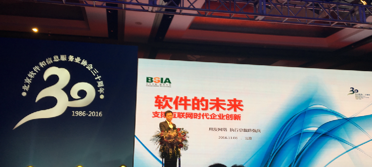 近日,北京軟件30年發展研討會暨北京軟協第八屆理事會第三次會員代表大會在北京新世紀日航飯店舉行,大會對北京軟件行業30年的發展歷程進行回顧,同時探討了軟件的未來,分析了互聯網時代軟件如何支撐企業創新。用友網絡執行總裁陳強兵、中國軟協理事長趙小凡、中國工程院倪光南院士以及來自百度、搜狗、航天信息等近200家企業高管和代表參加了本次會議。用友網絡獲得北京軟件30年突出貢獻企業獎,同用友面向大中型企業的社交與協同辦公產品平臺“企業空間”獲得突出貢獻產品獎。