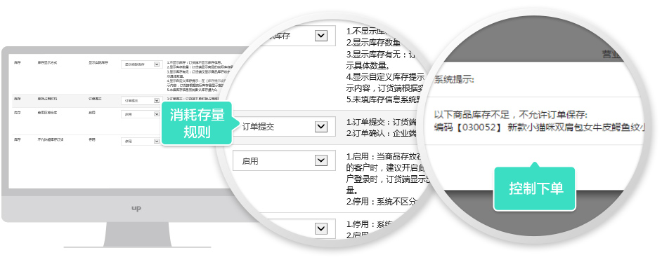 U訂貨支持買家下單(或者賣家確認訂單)時將消耗商品可用量,可用量不足時買家將無法下單,從而按照商品倉庫總體存量控制買家下單數量之和。