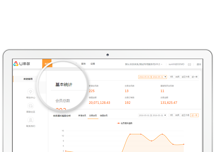 U易聯作為企業的會員管理平臺,不僅有會員卡管理、會員積分管理、連鎖門店會員管理、會員消費記錄管理,幫助企業實現會員數據化經營,了解終端消費者消費習慣及需求;還有微信營銷管理、微商分銷管理、微商城管理,幫助企業實現老會員的促活,新會員的引流與轉化,使新老會員形成消費習慣,產生粘性,擴大企業經營范圍。